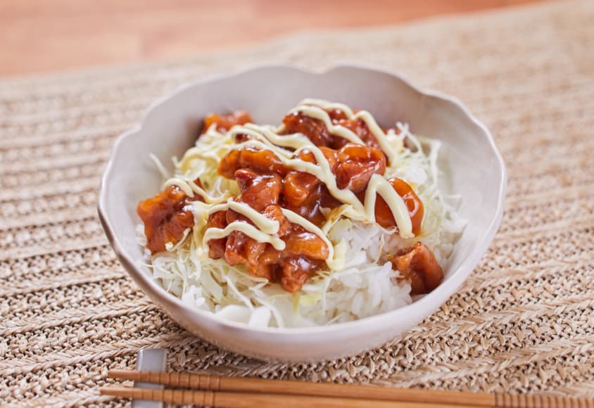 焼きとり缶の甘辛いタレがパンとキャベツによく合います。マヨネーズを使用することでエネルギー補給ができます。