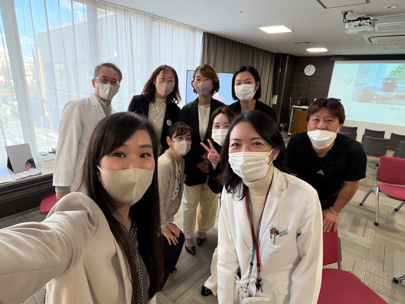 今回、イベントの企画を一緒に考えてくださり、相談に乗っていただいた、冊子「Nagomi time」監修の皮膚科・皮膚腫瘍科 医長/アピアランスケアセンター 副センター長 西澤綾先生とスタッフとで記念に1枚。