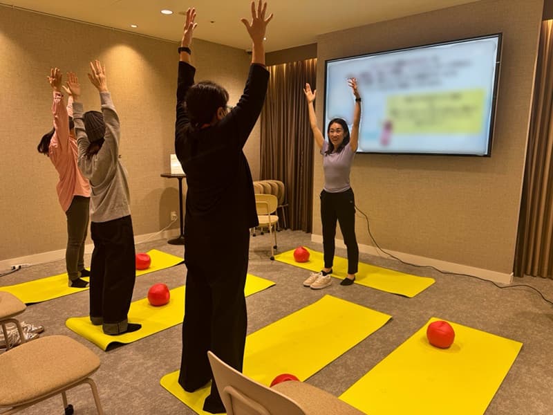 運動のブースでは、「体のバランスを整える」をテーマに、自宅で簡単にできるエクササイズとストレッチを辻本さんにレクチャーいただきました。