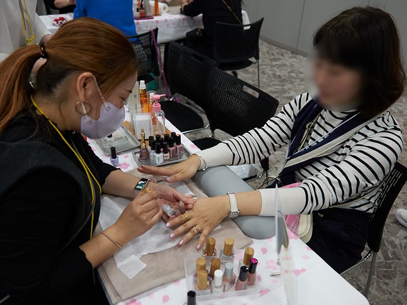 写真:ネイルブースでセルフケアの方法をレクチャー